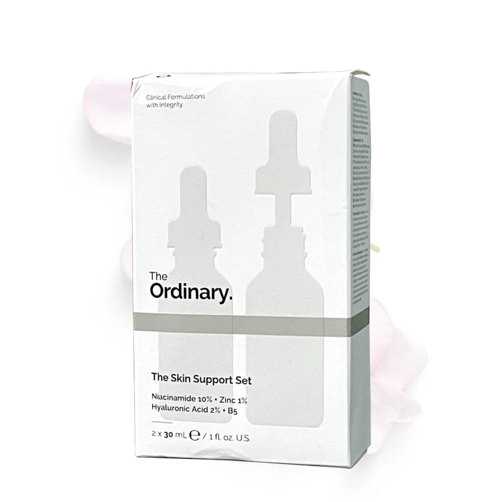 ست مراقبت از پوست اوردینری مدل ساپورت اسکین، حاوی دو سرم هیالورونیک اسید و نیاسینامید است.